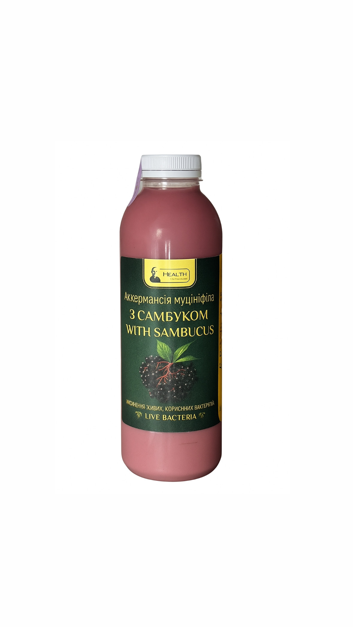 Склад: питна вода, органічні вівсяні пластівці 20%, органічний сік самбуку 8%, регулятор кислотності гідрокарбонат натрію, культури бактерій Akkermansia muciniphila. Концентрат пробіотичного напою містить бактерії Akkermansia muciniphila не менше 1×108 КУО/мл, Faecalibacterium prausnitzii не менше 2х10′ КУО/мл, лактобактерії не менше 2×10* КУО/мл, біфідобактерії не менше 4×10° КУО/мл.